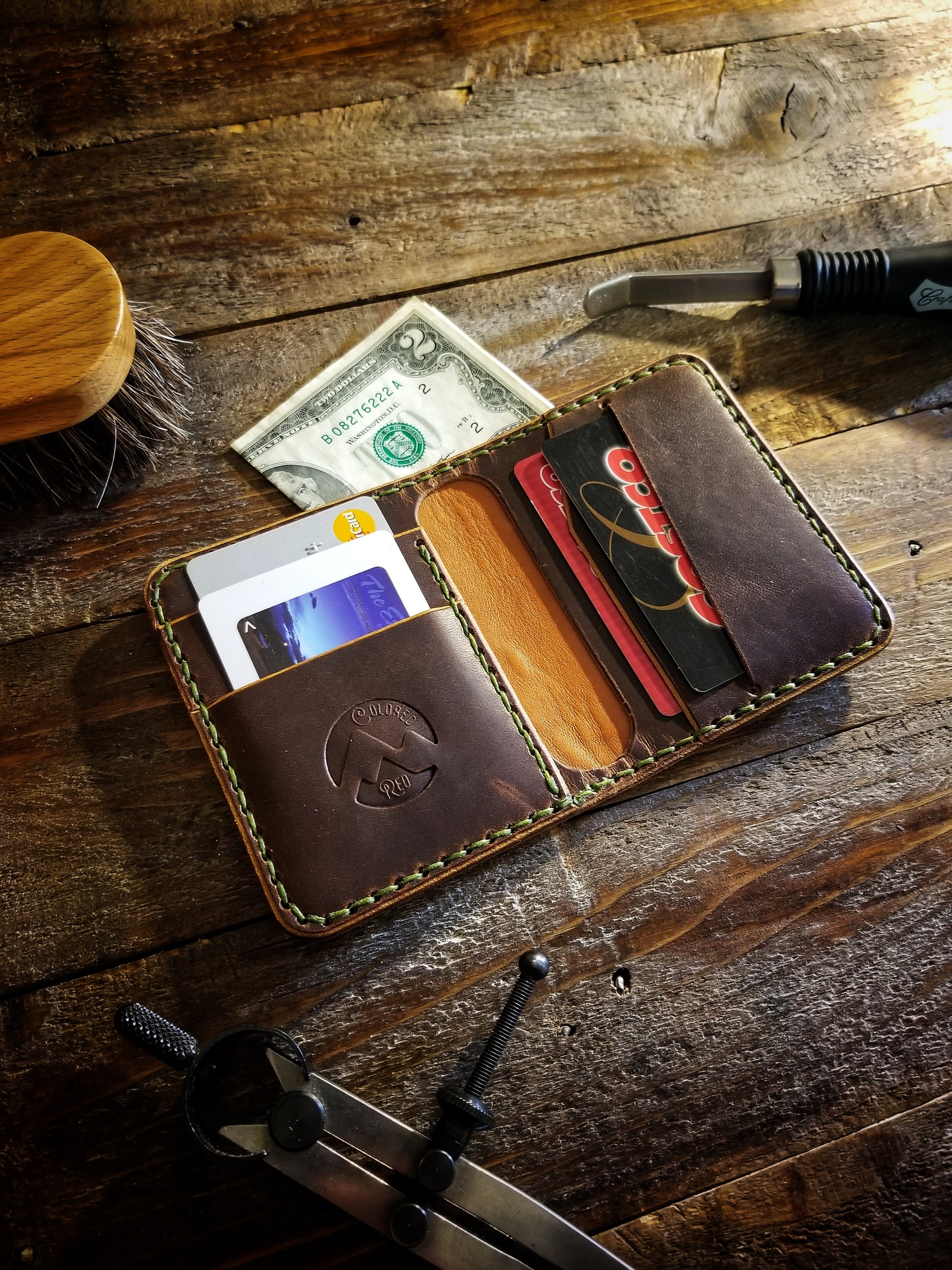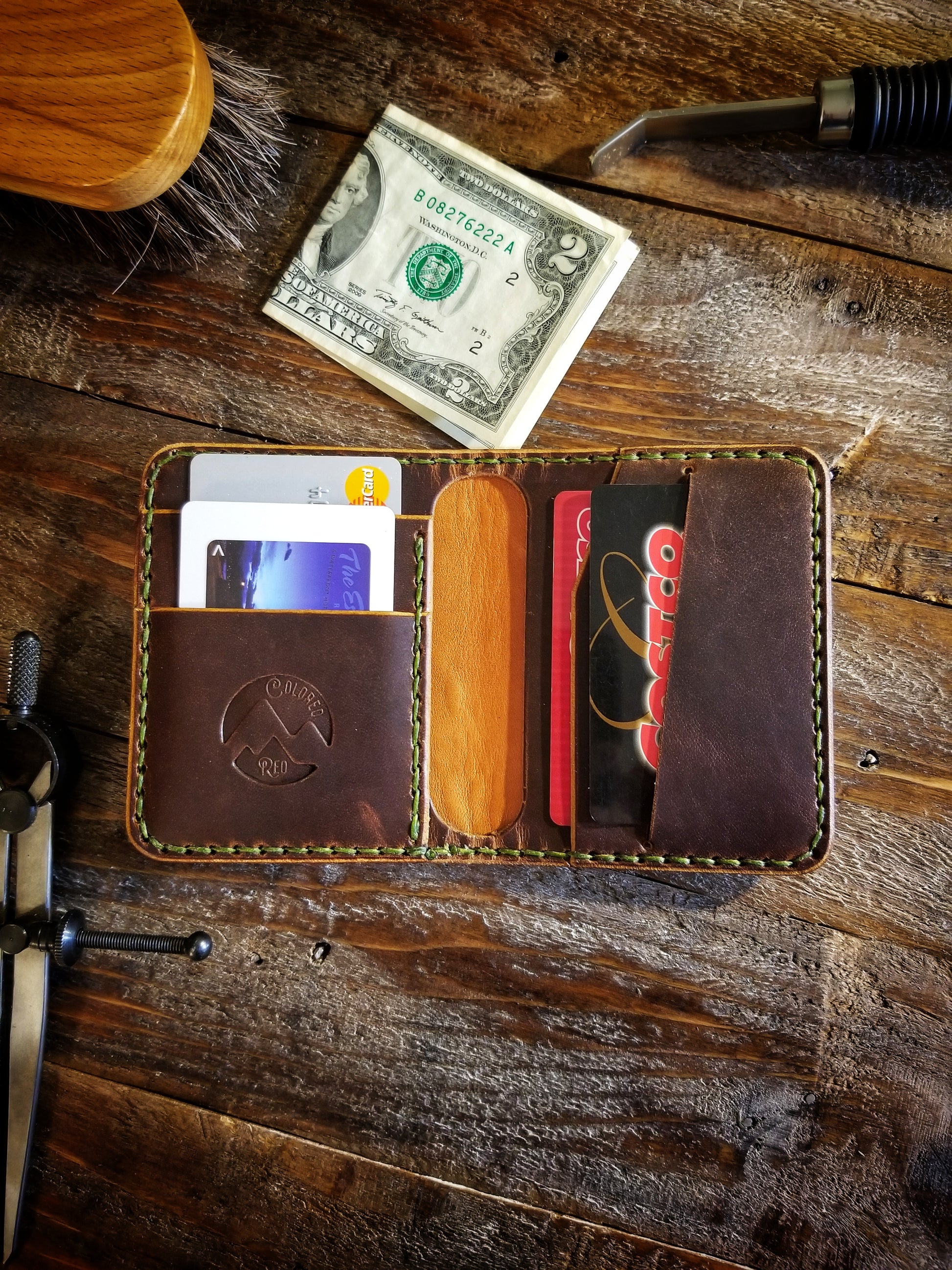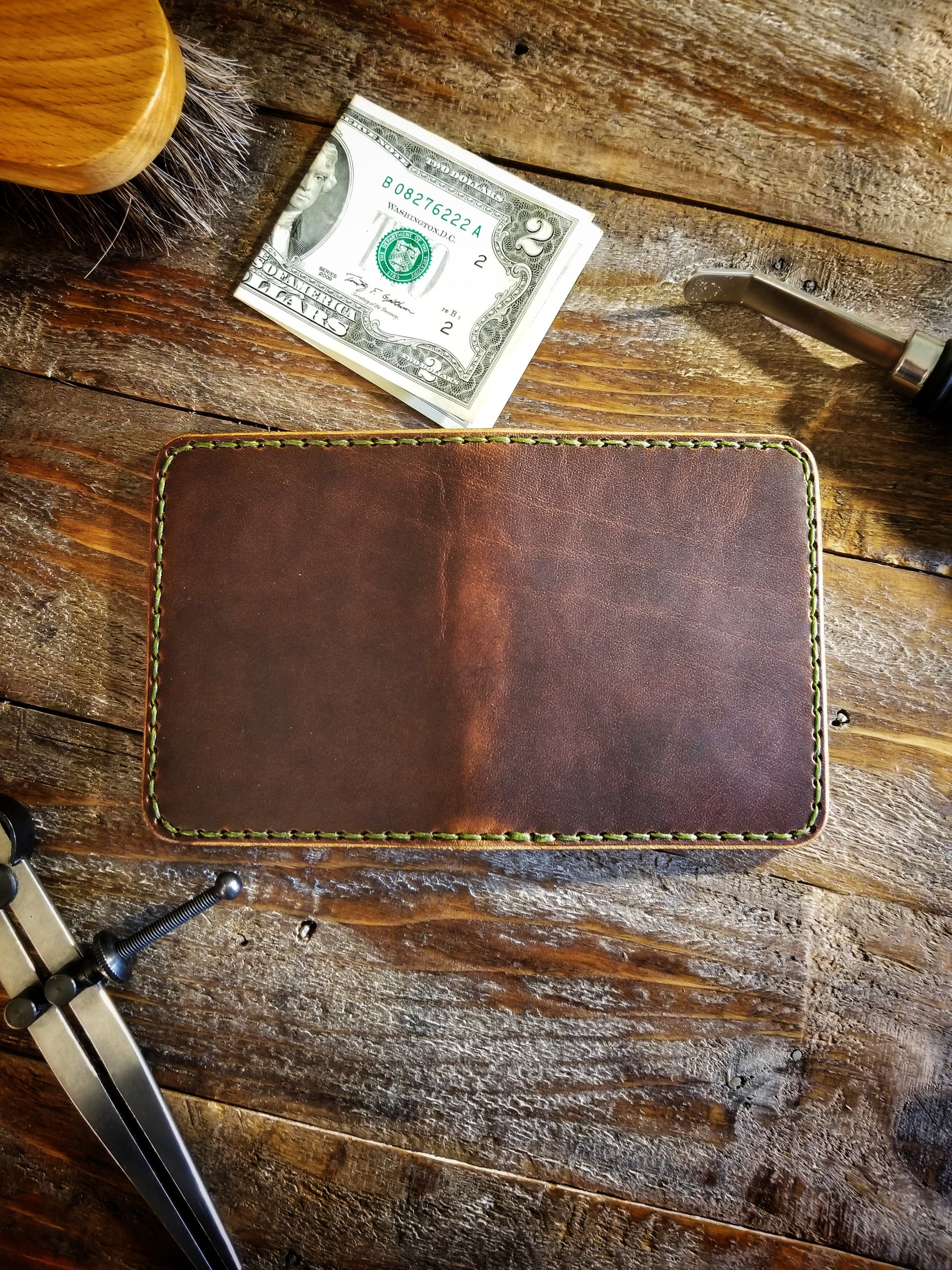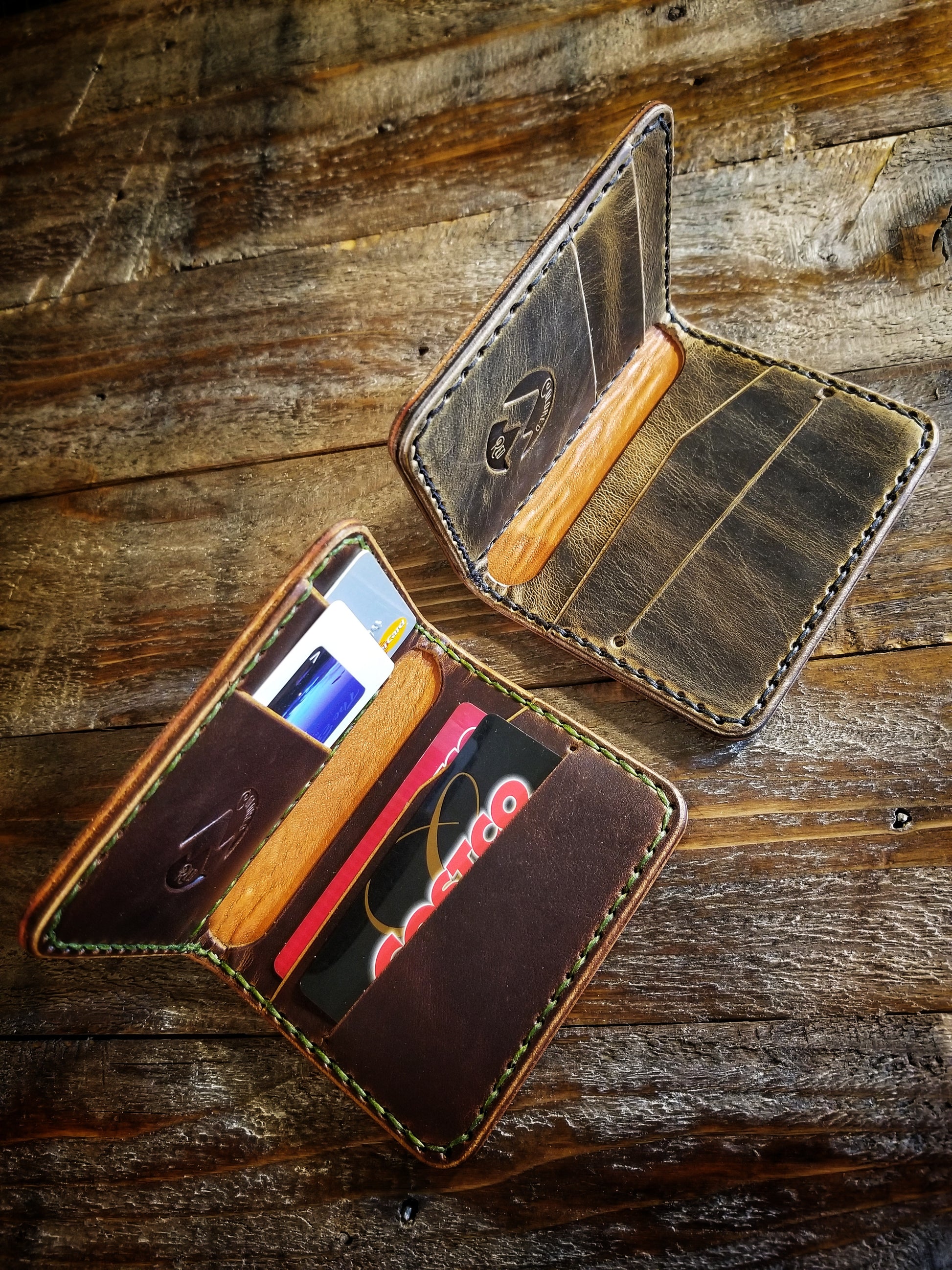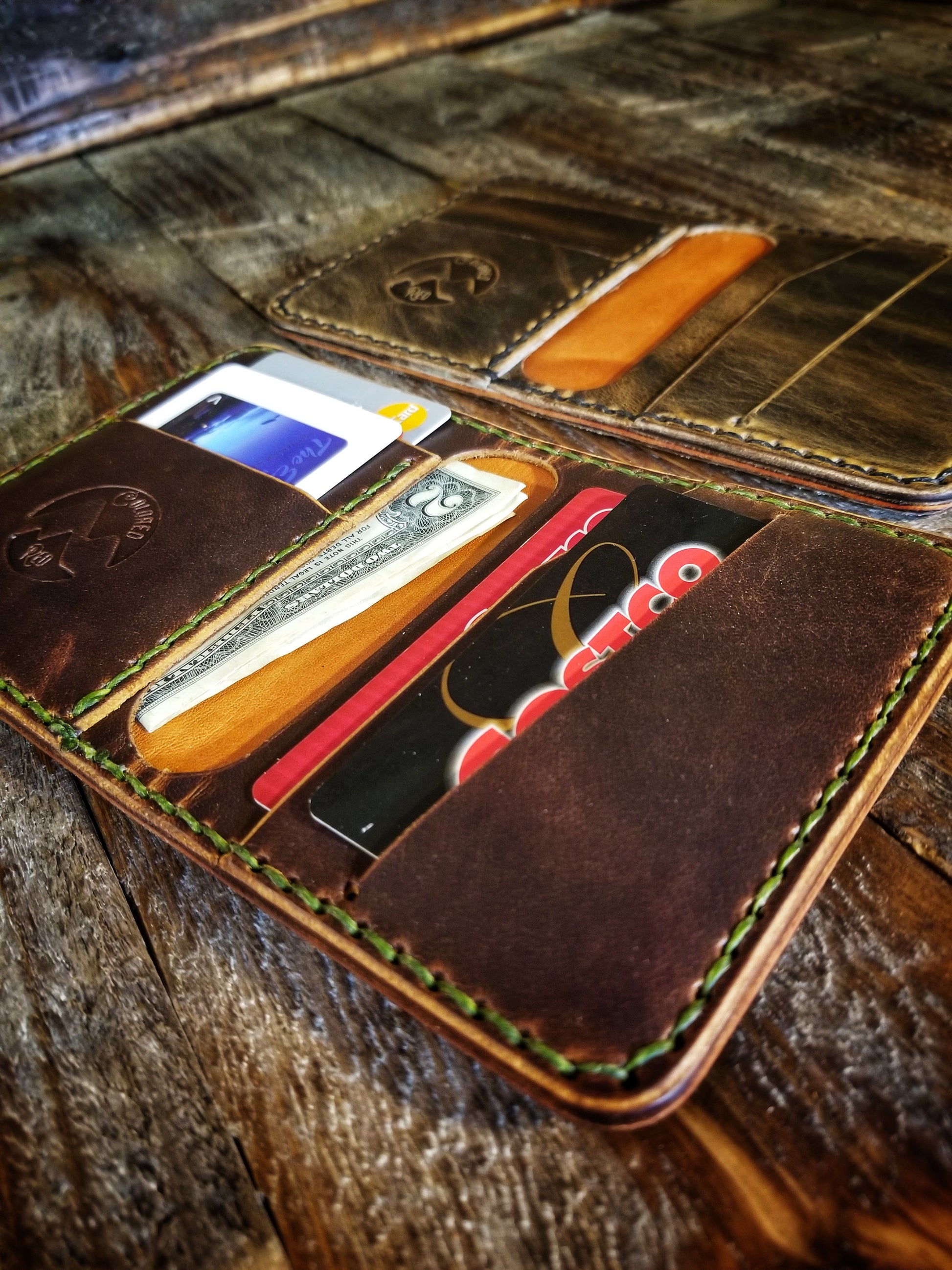 *Pictured in Autumn Harvest Leather with olive green thread, and Old Town Folklore Leather with black thread.